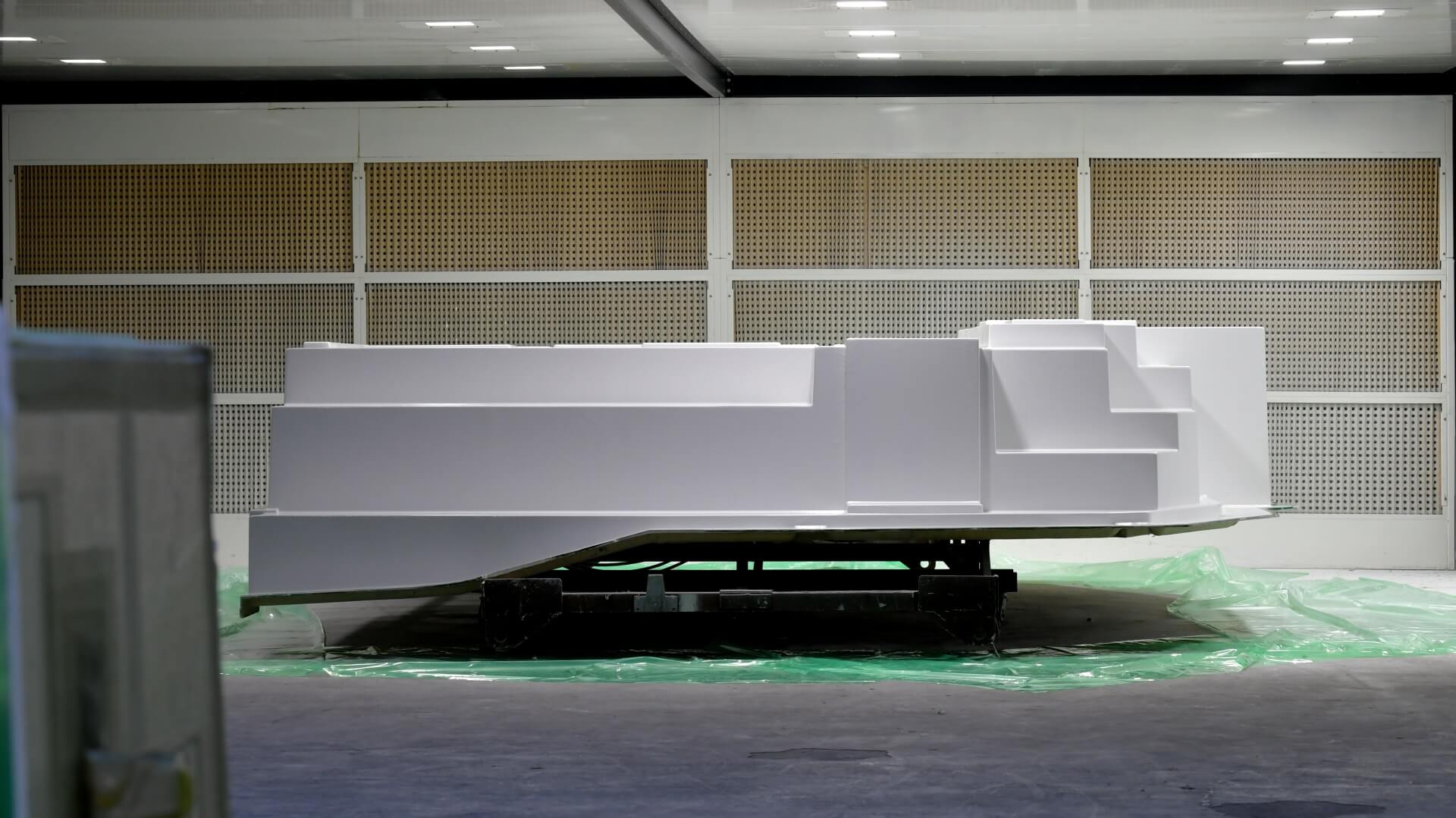 Pour un environnement de travail plus sain, le gelcoatage est effectué à l’intérieur de cabines spécialisées et ventilées, spécialement conçues pour confiner les émanations résiduelles et offrir un espace confortable de 2 × 140 m² aux opérateurs en charge de cette étape.